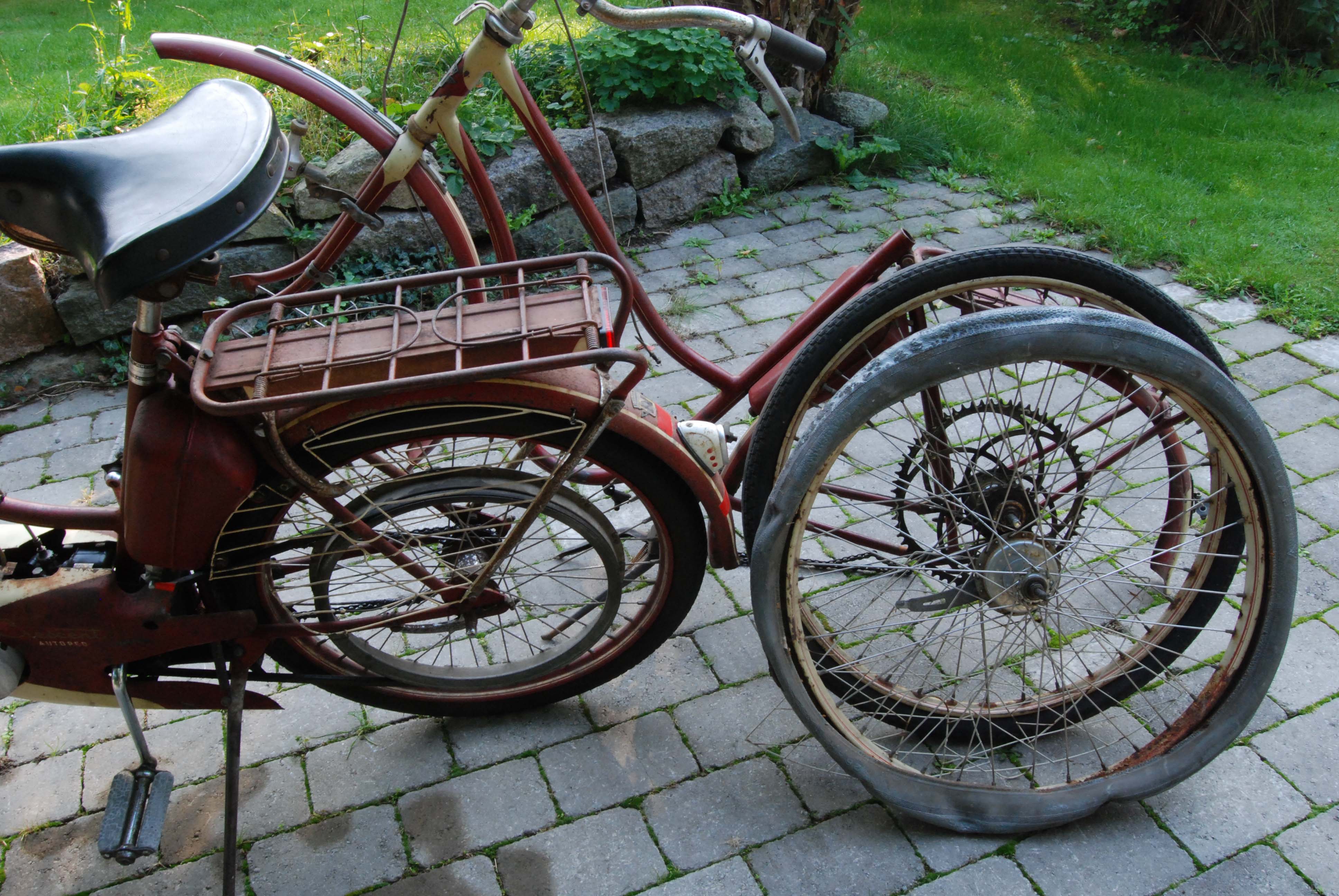 Reservdelsmoppe. Jo, den går säkert att renovera. Tror att jag har de flesta delarna i en låda. Min bror